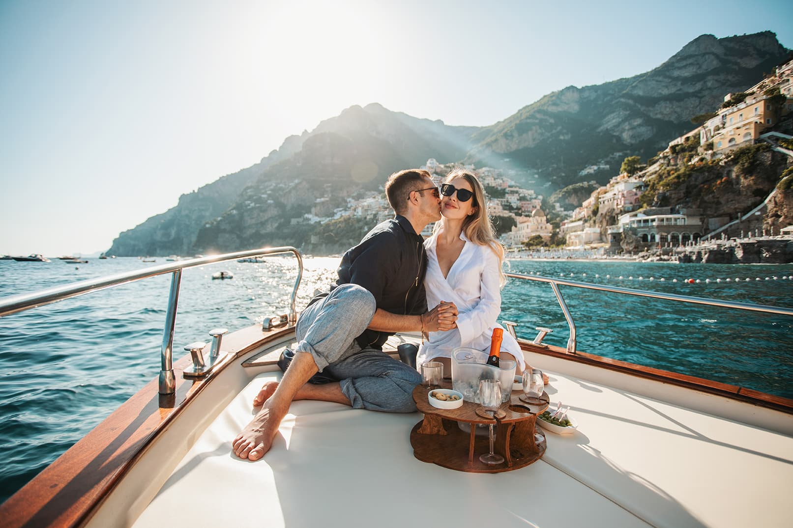Enjoy Positano by night from the sea.